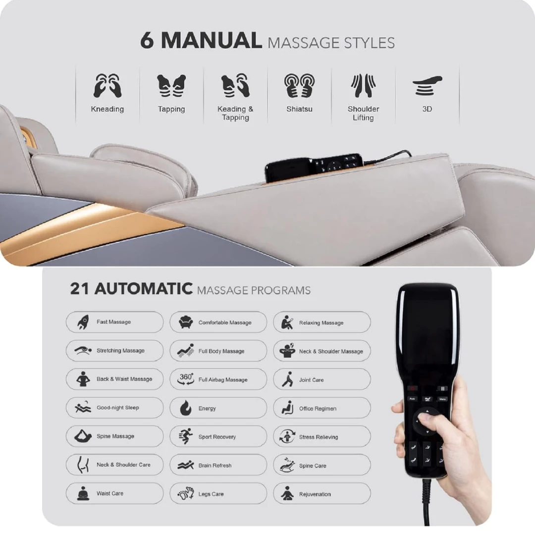 Ador Allure is a 3D adjustable massage chair with an advanced SL-track rolling system. The Allure massage chair comes furnished with an intelligent voice control, computer body scan, full body airbag massage, 3 steps of Zero Gravity with 21 auto massage programs.