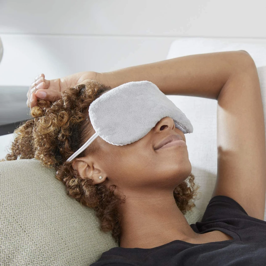 - AROMATHERAPY EYE MASK. A heated eye mask infused by lavender to help you relax or calm your tired eyes. Eye mask is a great solution for migraine relief , sinus pain relief, or simply used as a sleep aid.