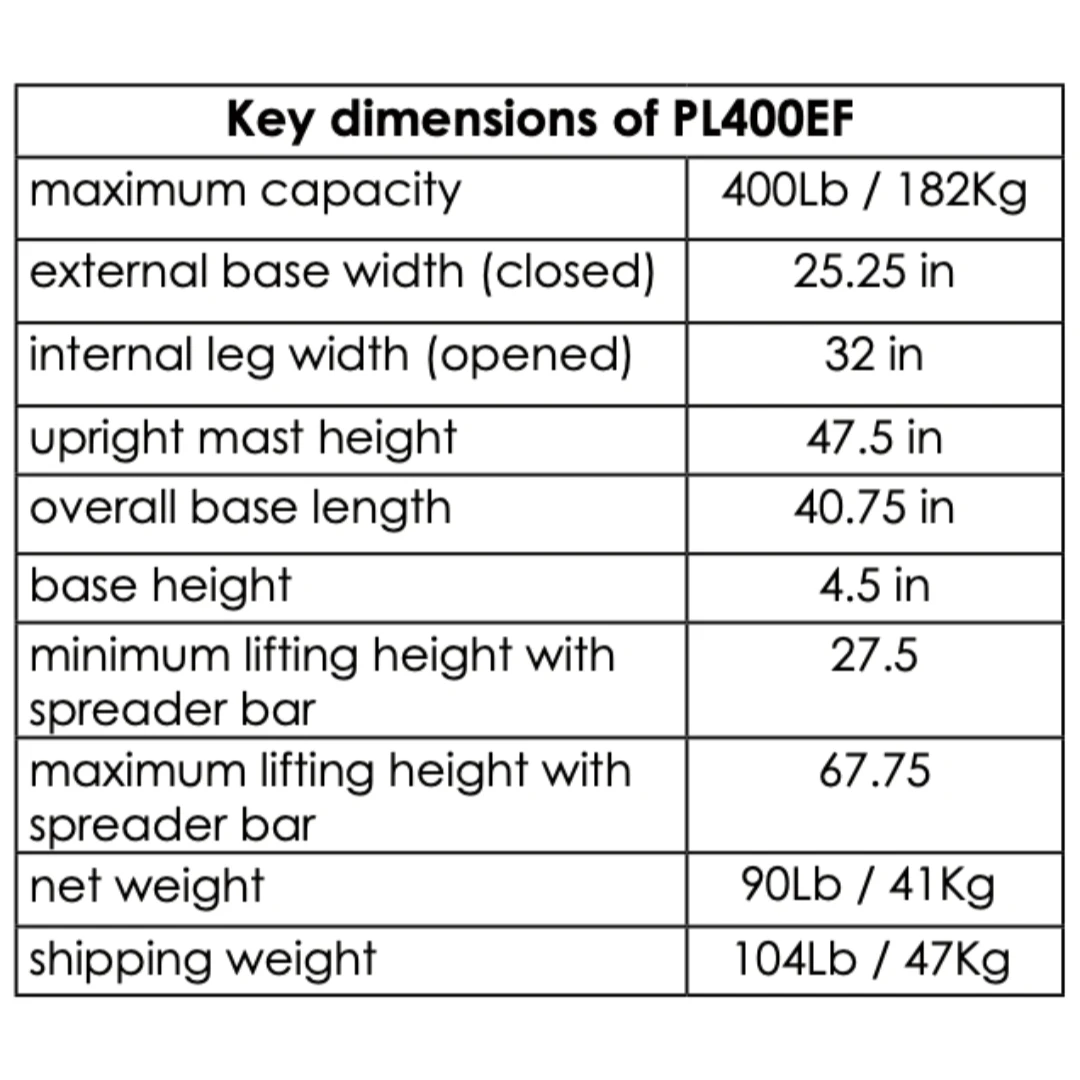 - 400 lb capacity