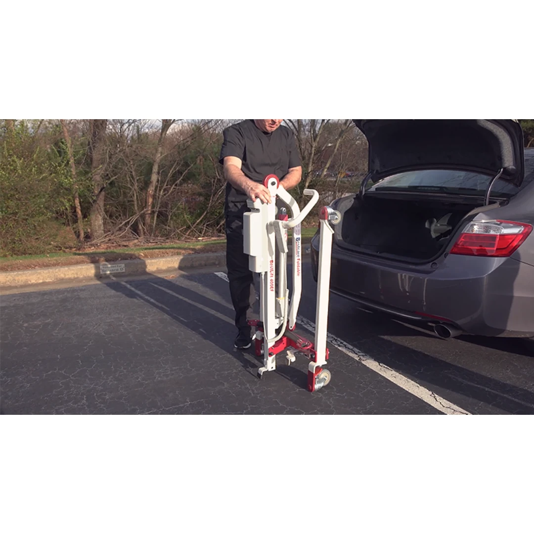 The Bestcare BestLiftâ„¢ PL400EF represents a new standard in full body lifts for individuals who travel or have storage issues in their home. It is a unique lifter with a small footprint and foldable design that assembles or folds in 3 simple steps allowing for easy storage or transport. As with all Bestcare lifts, this new Bestcare lifter continues to insure maximum safety and comfort.