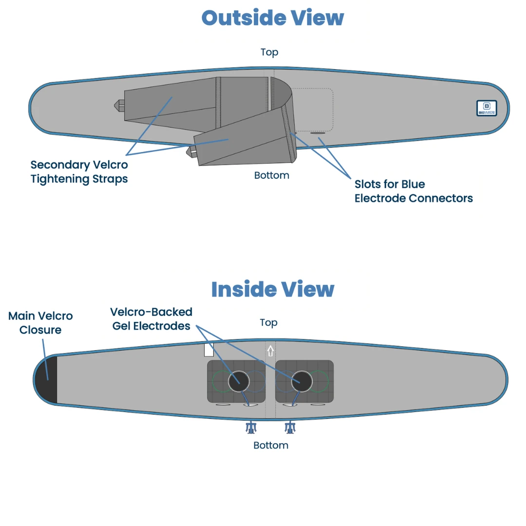 BioWraps® are proprietary wearable compression electrode garments. BioWraps are designed to deliver BioWave’s high frequency signal technology into deep tissue while simultaneously providing compression to the treated area. They are easy to use and help patients who need to treat difficult-to-reach locations of the body. We offer two lines of BioWraps – Silver and Blue. They use different types of electrodes to deliver BioWave’s therapeutic signal.