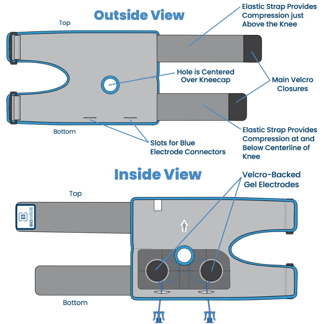 BioWraps® are proprietary wearable compression electrode garments. BioWraps are designed to deliver BioWave’s high frequency signal technology into deep tissue while simultaneously providing compression to the treated area. They are easy to use and help patients who need to treat difficult-to-reach locations of the body. We offer two lines of BioWraps – Silver and Blue. They use different types of electrodes to deliver BioWave’s therapeutic signal.