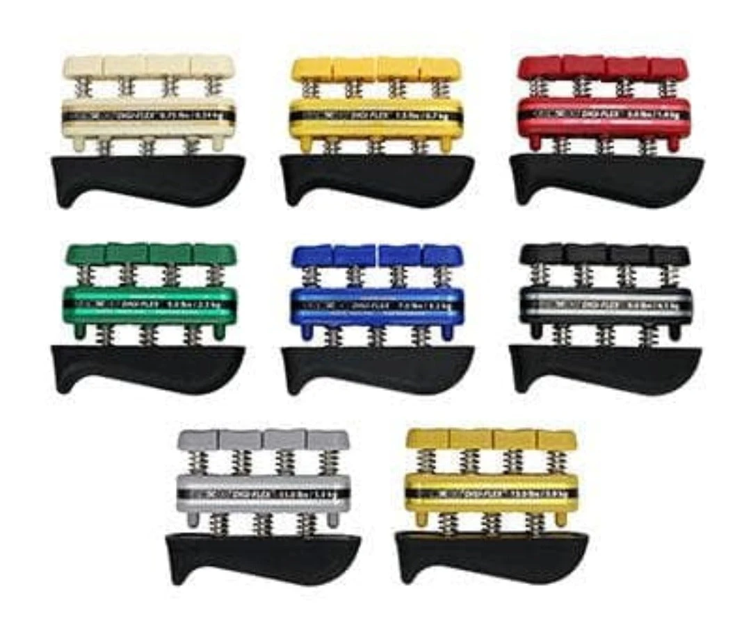 The CanDo® Digi-Flex® hand exercise develops isolated finger strength, flexibility and coordination as it builds hand and forearm strength. Use each button independently to exercise fingers or compress the entire unit for complete hand and forearm strengthening. Comes with illustrated manual. Develops isolated finger strength, flexibility, and coordination. Stronger fingers cannot compensate for weaker ones. Progressive color-coded resistance gives patient positive feedback. Also builds hand and forearm strength.