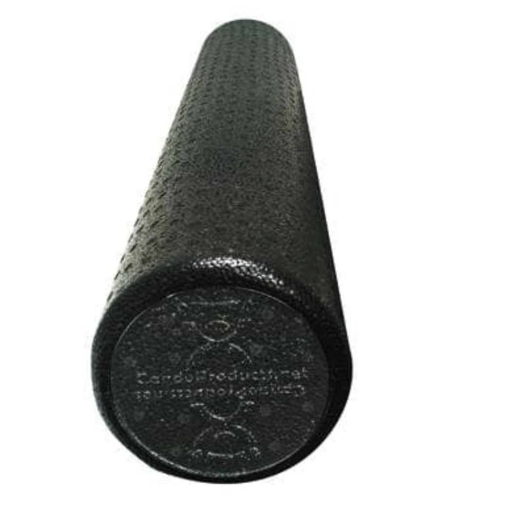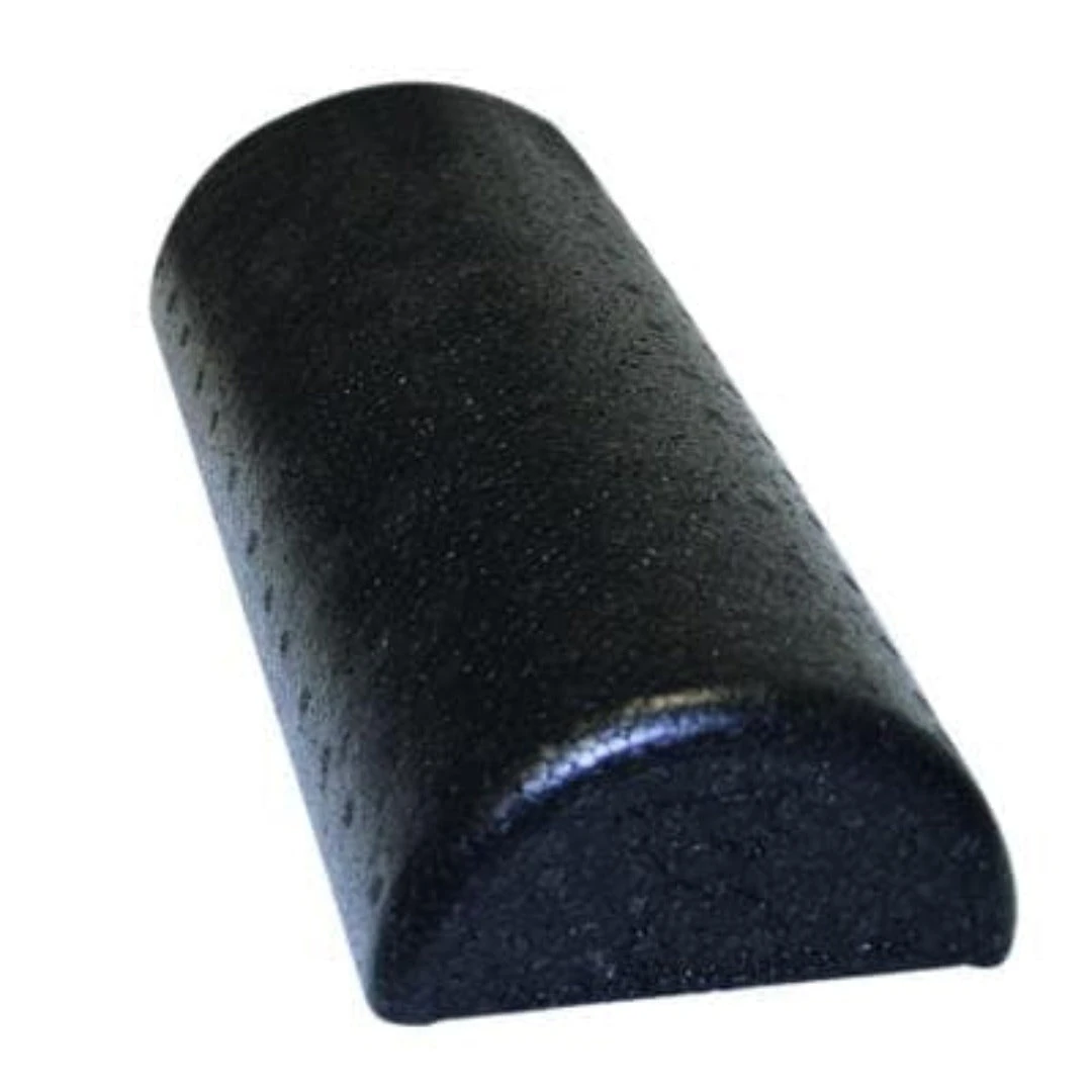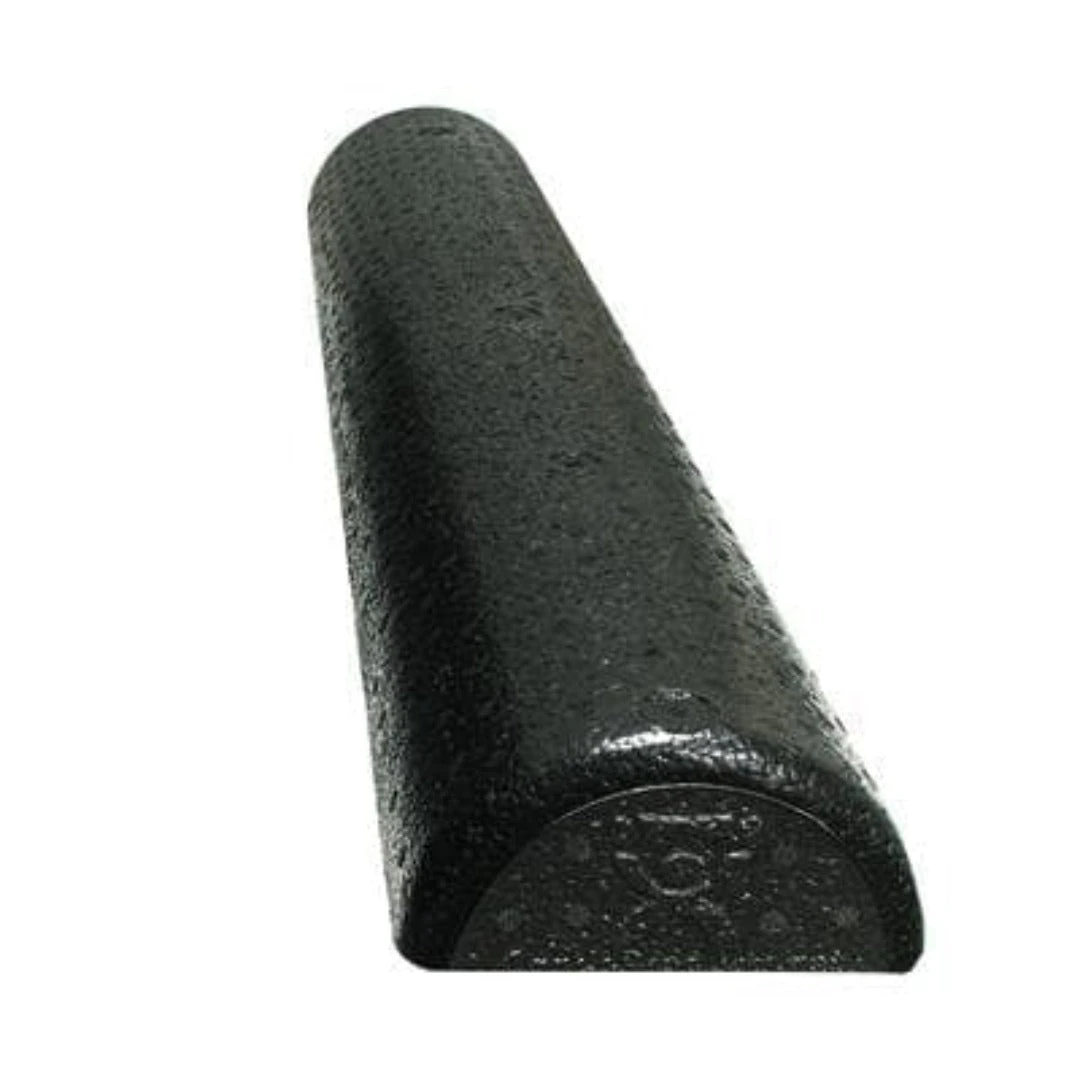Diameter refers to the width of the half-round profile. The molded rollers are strong enough to be used by large adults and active children. Foam rollers are available in 36″, 18″ and 12″ lengths with either a round (circular) or half-round (semi-circular) profile. This line of rollers is available in black. The molded composite foam rollers are more firm than the polyethylene roller and are rugged