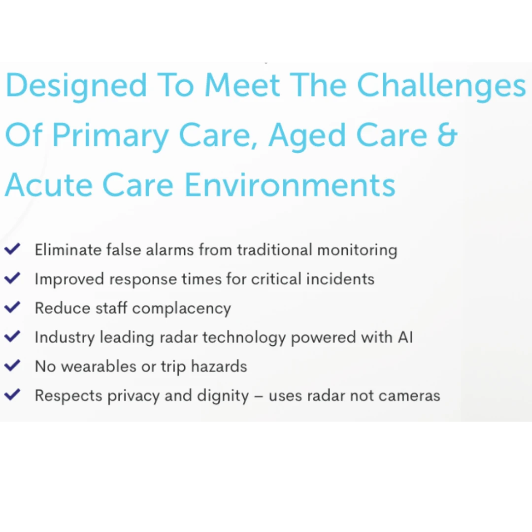 - Respects privacy and dignity – uses radar not cameras