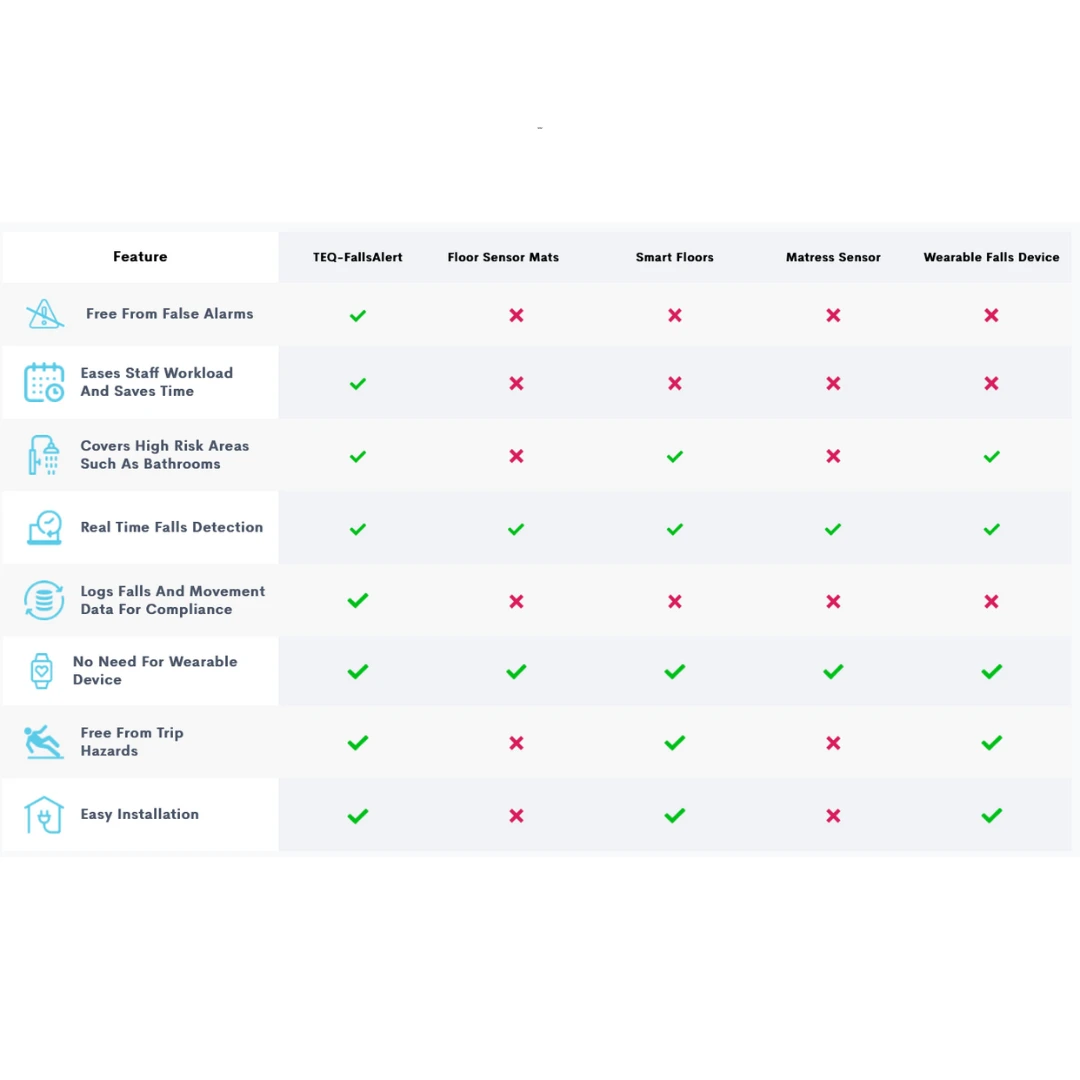 Compared to traditional falls monitoring systems, TEQ-FallsAlert saves staff hours and increases staff engagement.