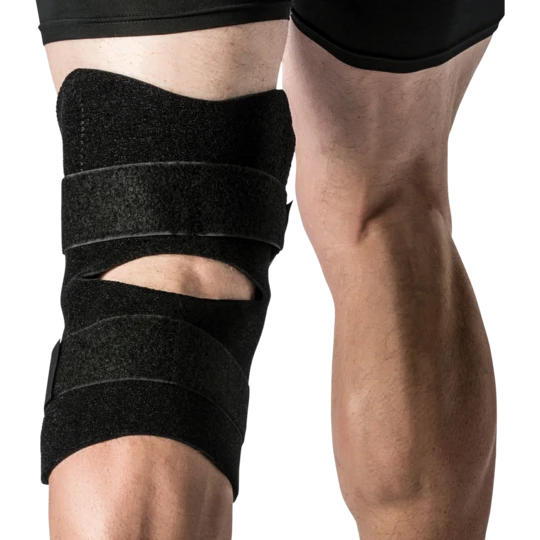 The front opening reduces pressure across the patella, which helps prevent aggravation to tenderness or bruising. Popliteal cut out helps increase comfort and reduces material bunching during knee flexion. The adjustable closures provide a customized fit and allow for variations due to swelling. Compression straps above and below the knee help prevent brace migration during activities. Bilateral design fits right or left knee.