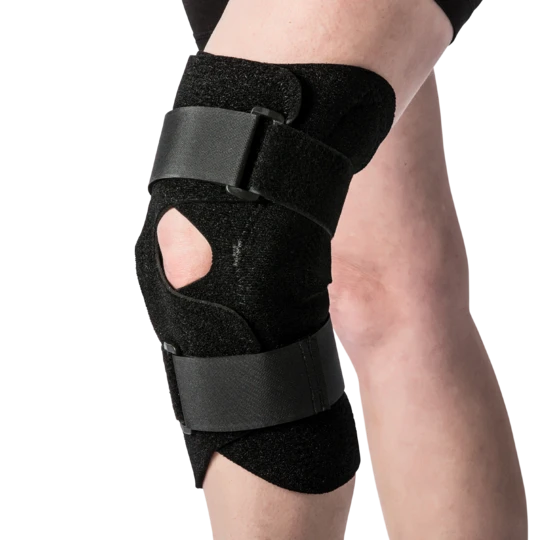 The wraparound design is easy and less painful to apply and adjust compared to pull-on style knee supports. Medial and lateral buttress pads can be repositioned or removed as needed to help improve patella tracking. Removable aluminum hinges provide knee stability and support to help prevent hyperextension; the plush neoprene construction provides compression and retains body heat to help reduce pain and promote healing.