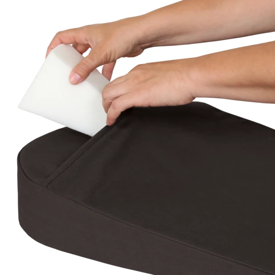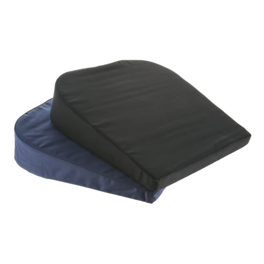 Helps restore and maintain correct posture. The gentle incline helps promote proper posture while performing daily tasks. Removable coccyx pad makes this cushion comfortable for those with tender tailbones. Precision cut foam with removable cover. Available in Blue and Black 15 x 15½ (38cm x 39cm) with a 1 to 3¾ (2.5cm to 9.5cm) rise.