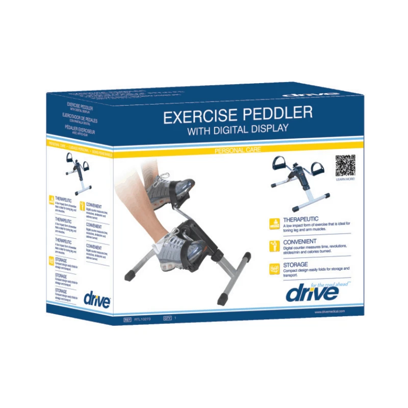 Advances Mobility – Health and Independence The Folding Exercise Peddler with Electronic Display by Drive Medical is simply unbeatable when it comes to helping you increase your mobility and circulation as well as the strengthening of your legs and arms. The combination of these benefits can greatly boost your overall health and independence. As a leading edge exercise machine, this peddler is sturdy yet light-weight and comes complete with an attached display.