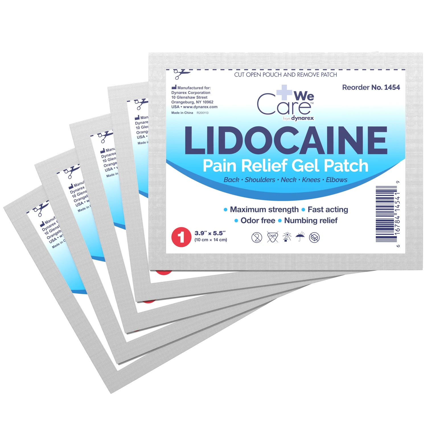 - Compare WeCare™ by Dynarex Lidocaine Pain Relief Gel Patch to Salonpas® Lidocaine Pain Relieving Gel-Patch