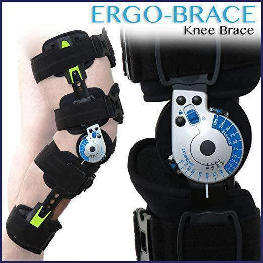 - The ErgoBrace G1 KPA Over Motion Hinge Post-Op Knee Brace Support is a lightweight device, with two adjustable hinges with spring assisted push buttons for flexion from 120 degrees to 180 degrees of extension.