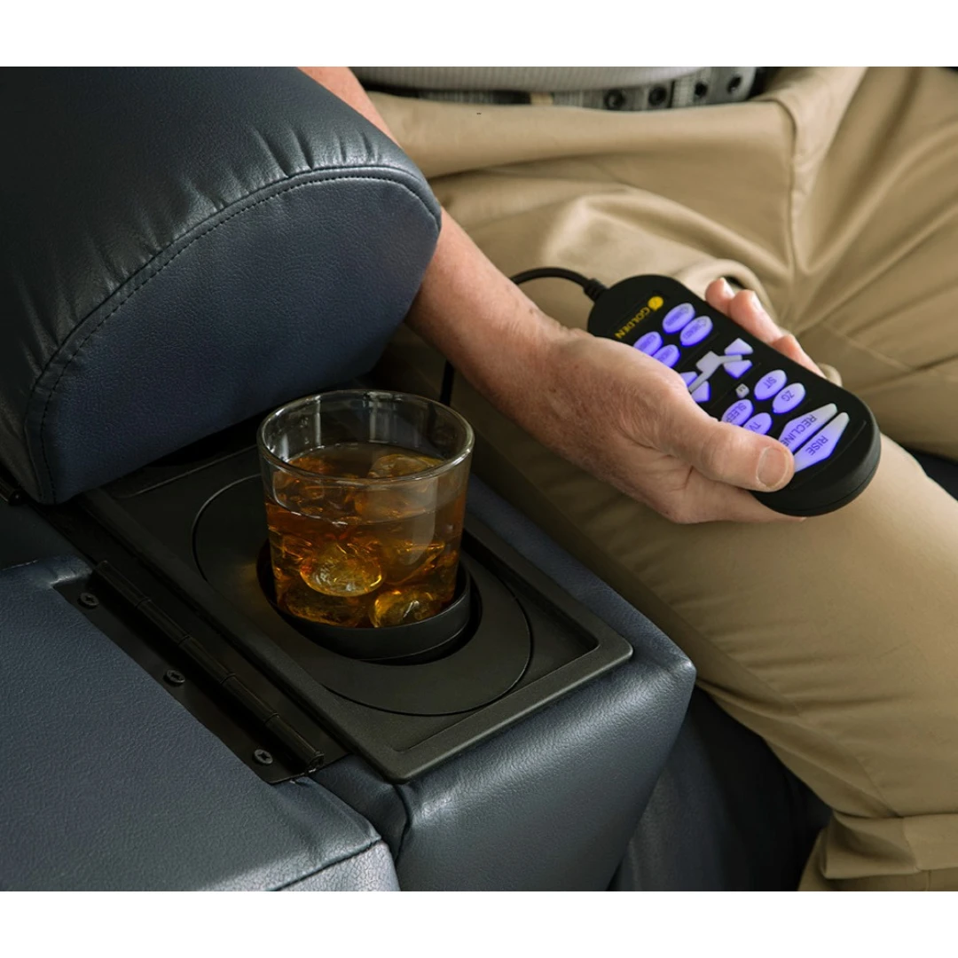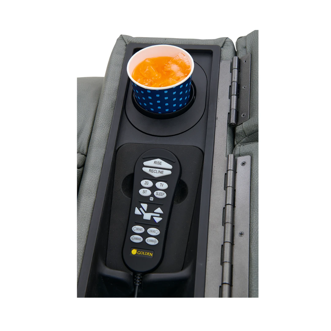 Integrating the latest advancements in convenience and innovation, the Regal Power Lift Recliner sets a new standard of functionality. Deliberately designed, the right and left arm compartments offer a wealth of practicality. The right arm compartments house a specialized no-spill cup holder that securely holds your beverages upright, even during transitions into or out of the lifted position. Furthermore, it conveniently stores the AutoDrive hand control, ensuring quick and easy access whenever required.