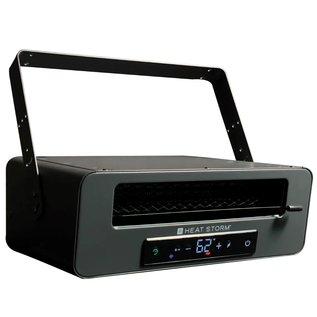 The Heat Storm 6000-Watt Wall Mounted or Ceiling Mounted Wifi Enabled Heater is a great solution for any garage, workshop, basement or area where there is not much floor space. It mounts on the wall or on the ceiling and At 6000 Watts this heater will easily heat up your garage, basement or shop up to 1000 square feet. It does need to be hardwired in so you may need to hire a certified electrician to get it installed.