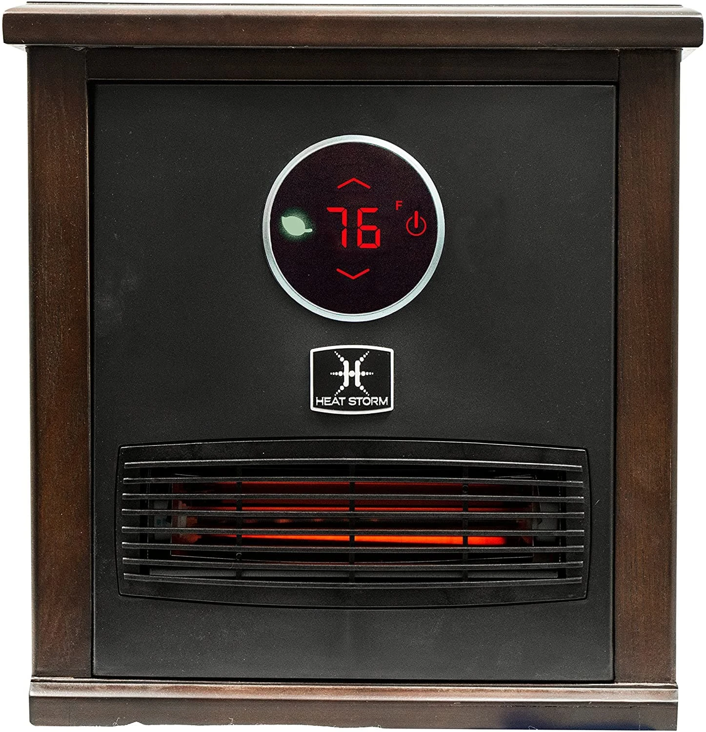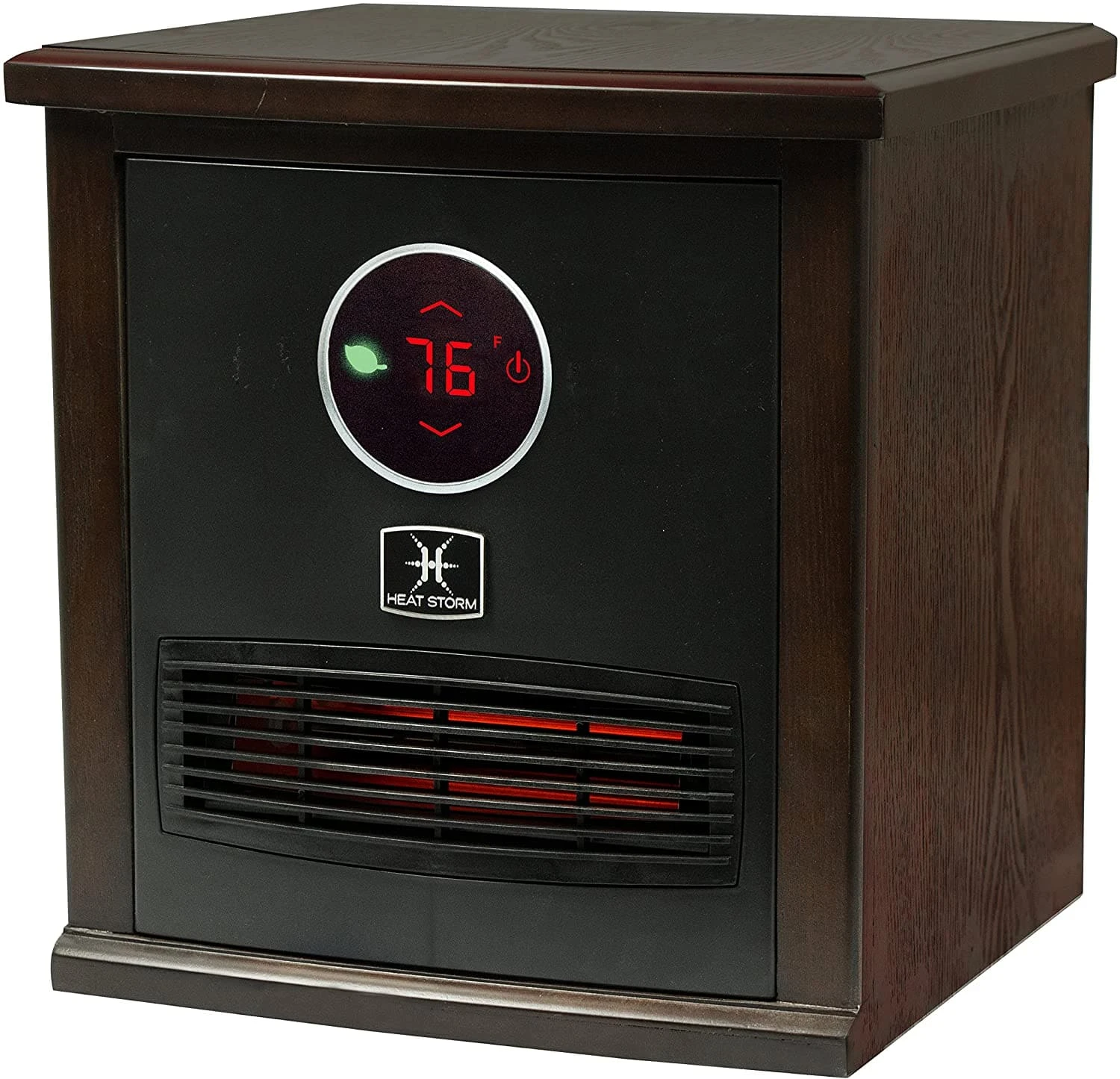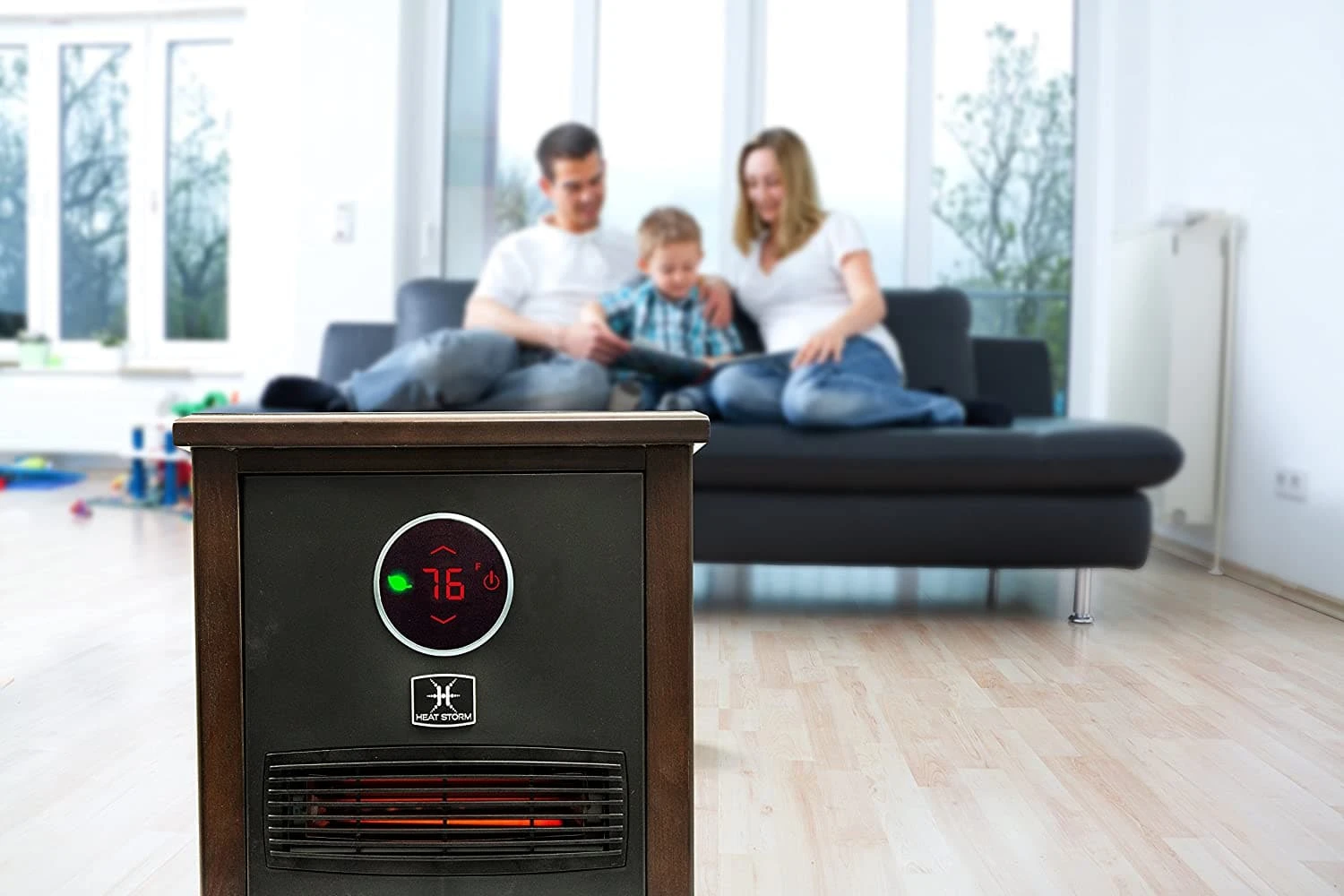 The HeatStorm Preston Portable Infrared Space Quartz Heater (Color -Dark Walnut) has space saving design and powerful performance that will be the perfect solution for any room in the house. Castors for easy movement. Built in thermostat and large digital display for easy and convenient use.