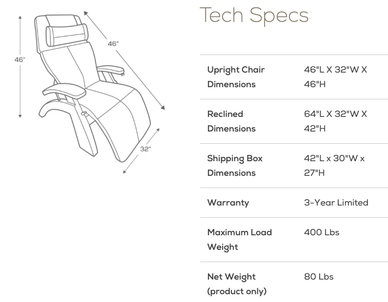 The electric recline system eases the body into a virtually weightless position, as it elevates the legs above the heart and relieves weight from the spine. This remarkable chair relieves the soreness, tension, and fatigue caused by the earth’s constant pulling, while its fixed-form seating position ensures maximum ergonomic posture at all recline angles.