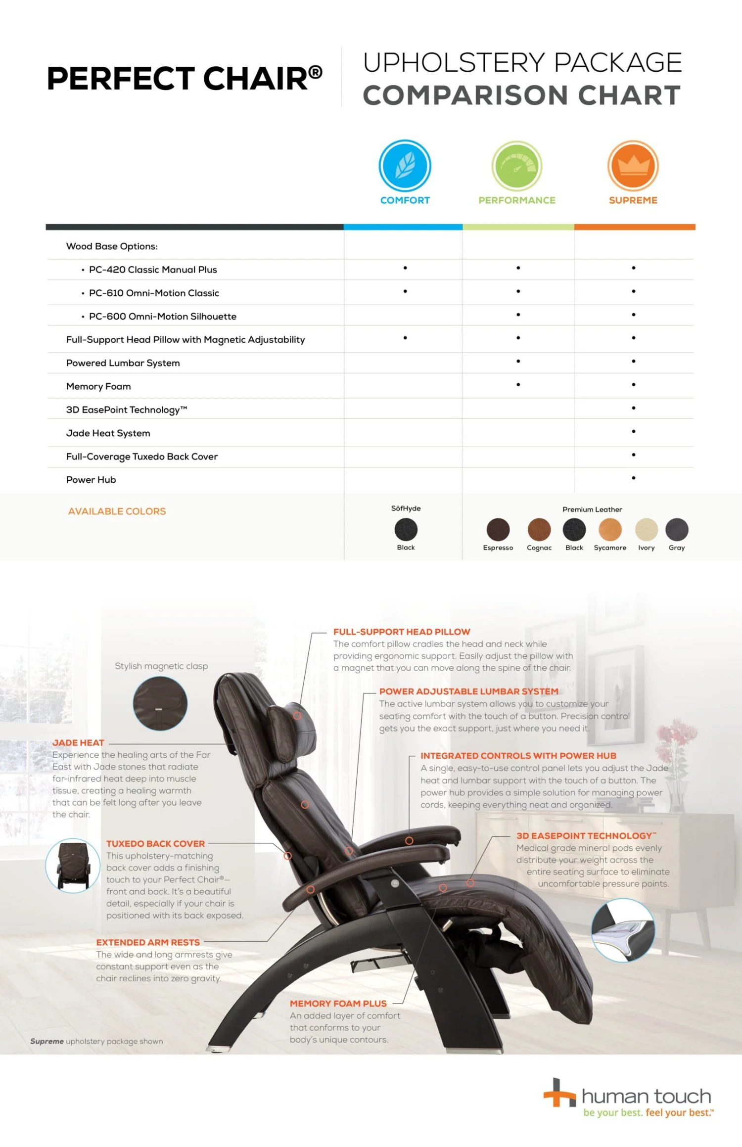 Sit back and enjoy a new seating experience in your Human Touch®Perfect Chair. A chair that uniquely and beautifully combines form and function—perfectly.