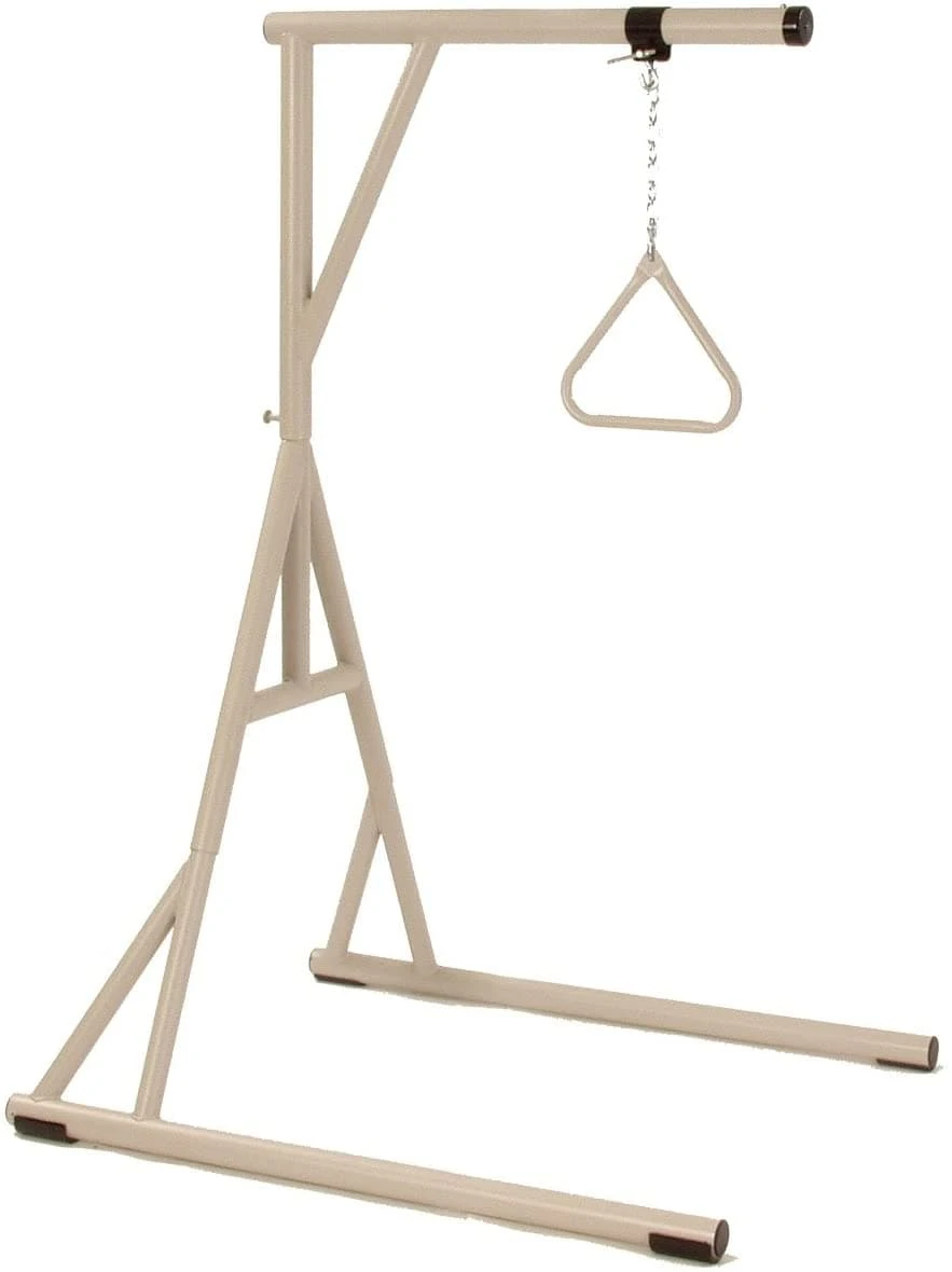 The Invacare Bariatric Trapeze unit is an important patient accessory for bariatric patients. The free standing structure permits the patient to use the trapeze bar to change positions while in bed