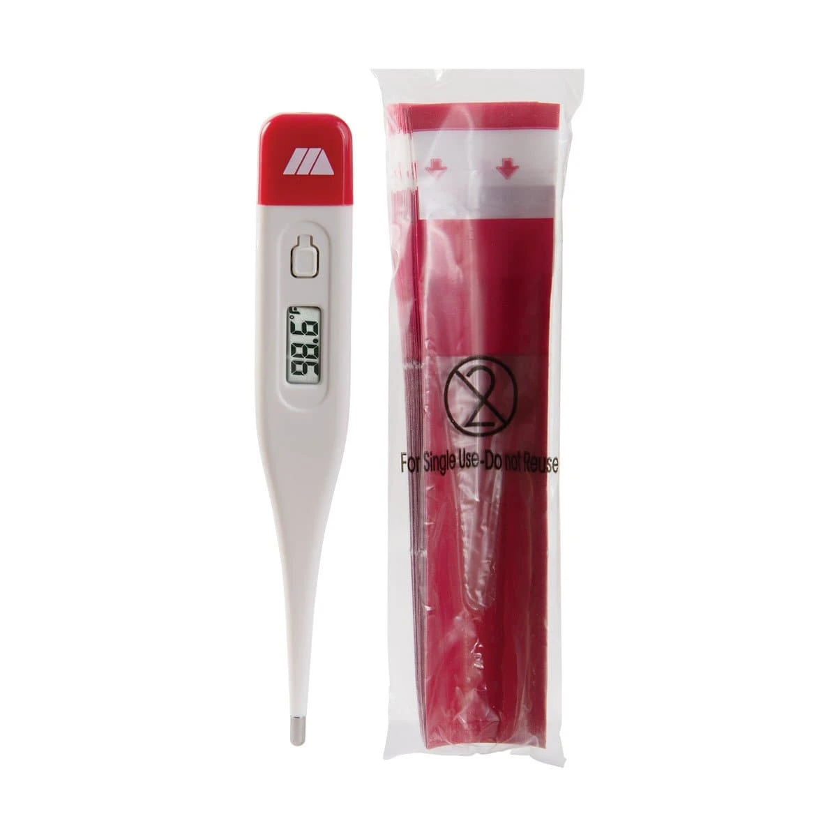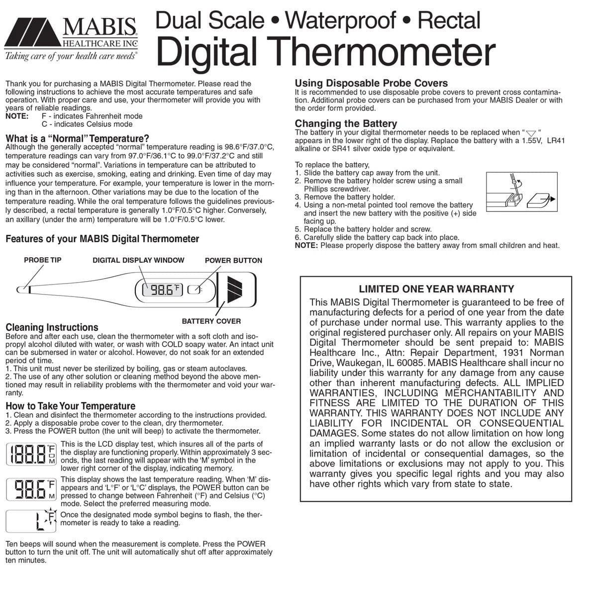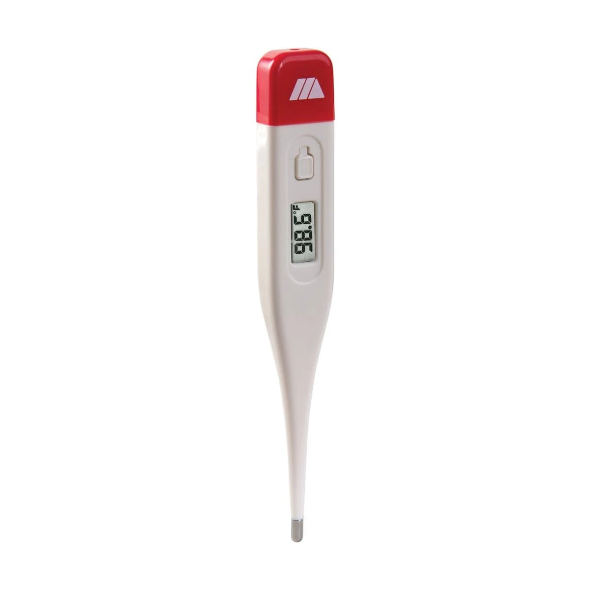 - This stylish red and white MABIS Digital Thermometer gives you accurate rectal temperature readings in 60 seconds or less to help you diagnose symptoms during cold and flu season