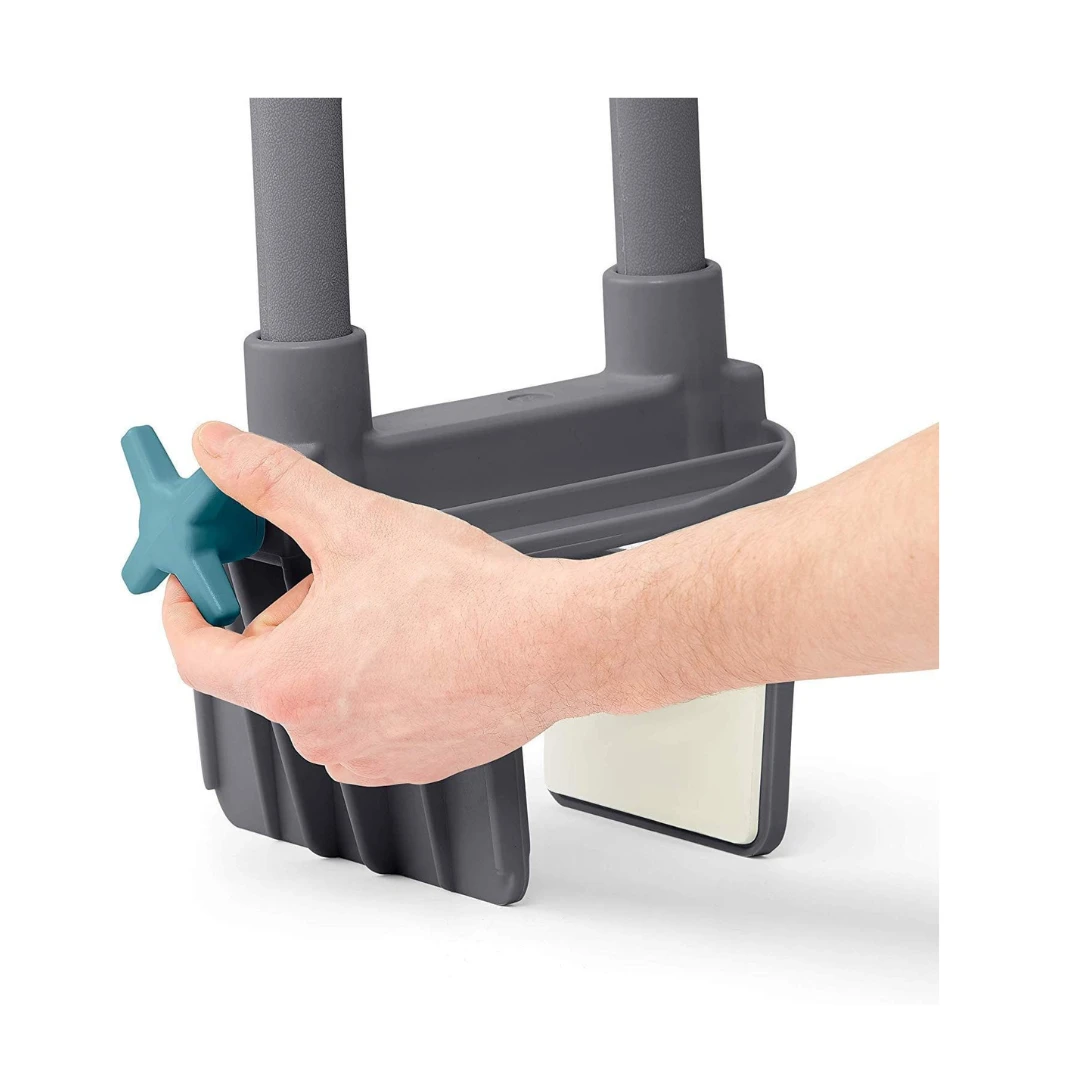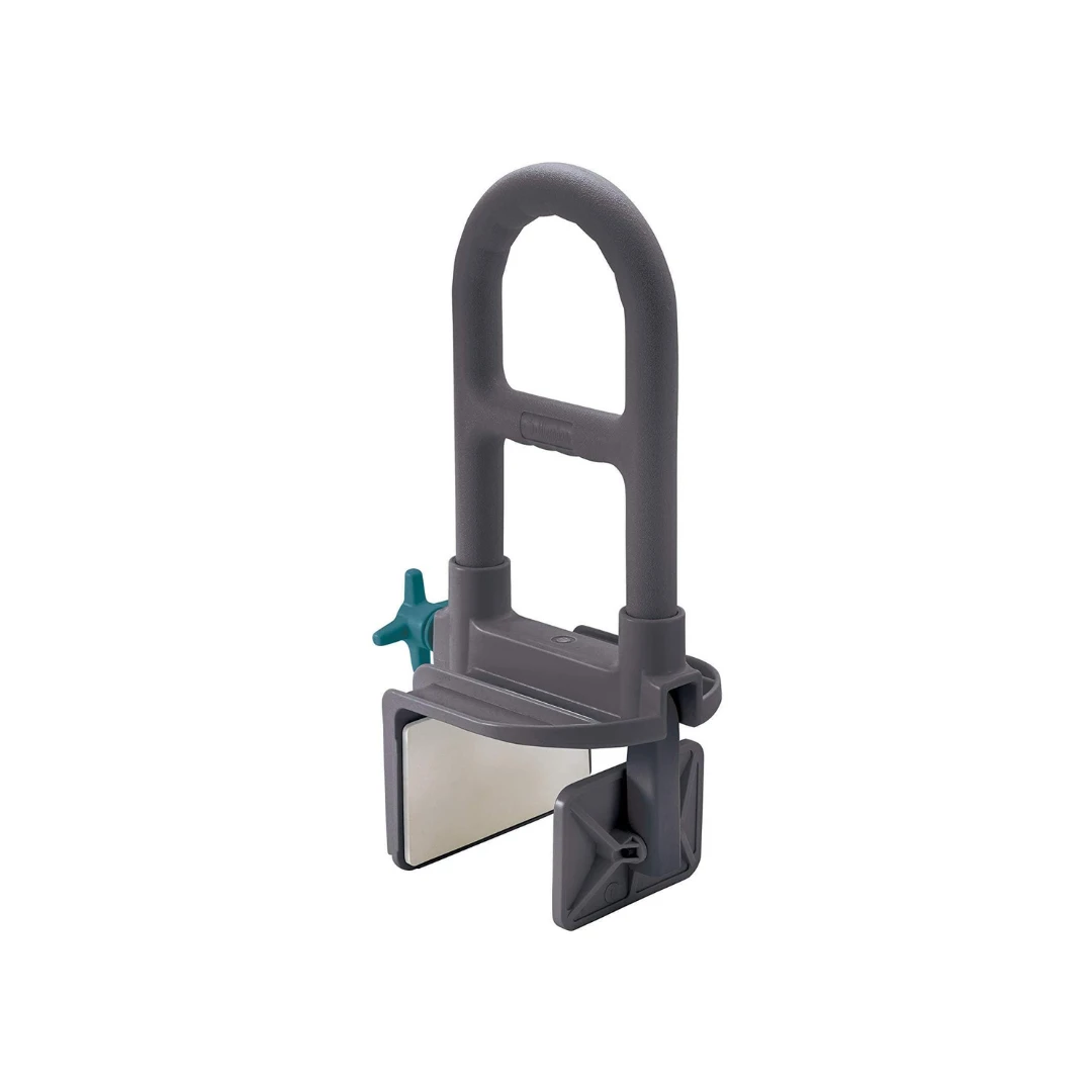 - Rugged enamel-coated steel assist grab bar features tool-free installation with non-slip, rubber-lined pads that clamp to tub surfaces without scratching them
