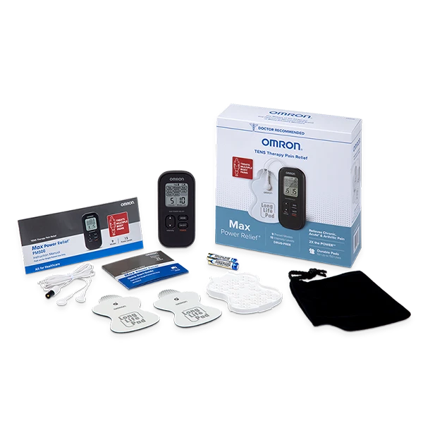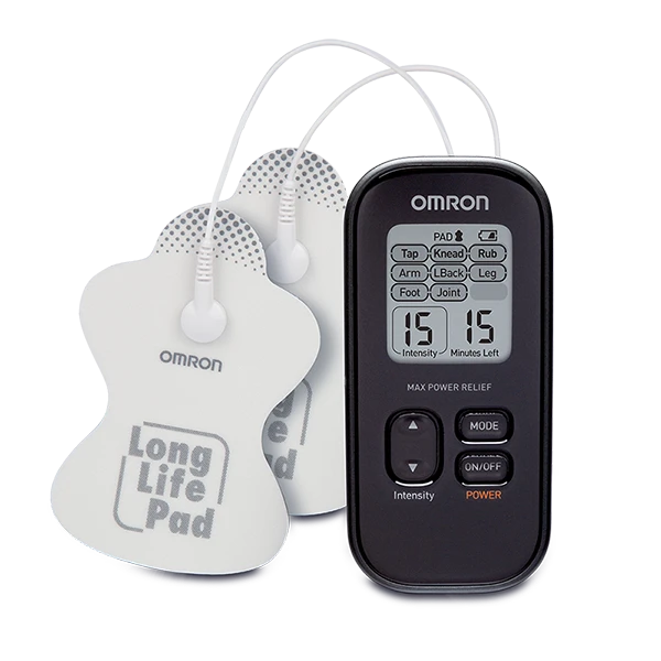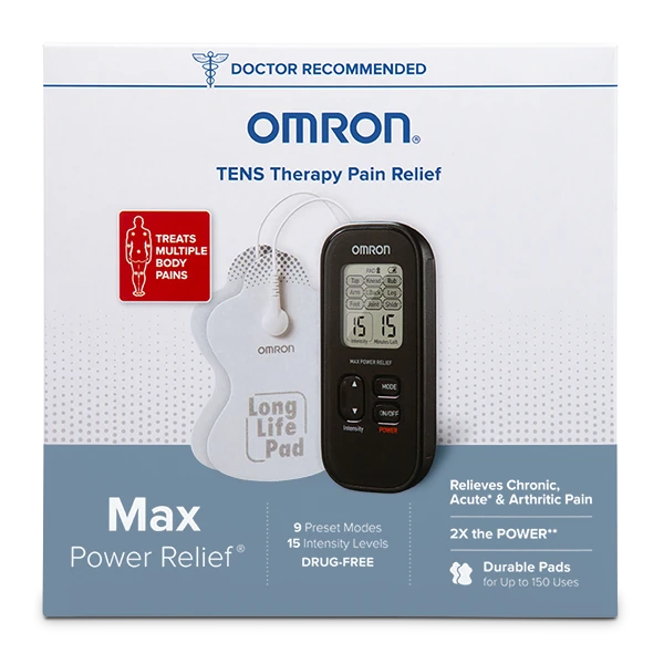 Offering two times more power with the OMRON Max Power Relief (PM500), one of our most versatile TENS units is still easy to personalize and customize. When you have those hard to reach, deep pains that just keep coming back, choose Max Power Relief (PM500). It is perfect for those who may experience pain in the lower back or recurring knee and shoulder pain. This highly customizable TENS unit has modes to reach most of your pains. Take it to work, use it at home or while traveling. The OMRON Max Power Relief TENS Unit is extremely portable, it fits perfectly in the palm of your hand or inside your pocket for discreet use. This device has six body pain modes (shoulder, lower back, arm, foot, leg, joint), and three massage-like modes (rub, tap, knead), each with 15 adjustable levels of power intensity to help relieve your pain. The comfortable, self-adhesive Long Life Pads (1 pair) are reusable up to 150 times and a plastic holder for storage is also included. The OMRON Max Power Relief is one of our strongest, most adaptable TENS units for all of your pain management needs.