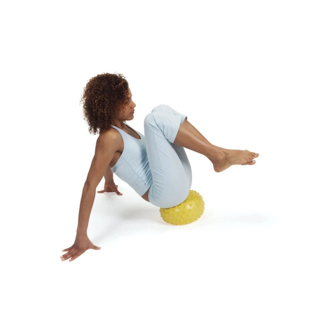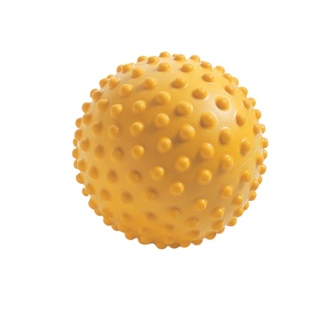 The Bumpy Ball is constructed of a thick, but soft, PVC foam making it perfect for self-massage, myofascial release, trigger point therapy and more. The small bumps on the surface make it easier to catch than smooth vinyl or rubber balls and stimulate the release of endorphins. 7⅞” (20cm) diameter. Needle inflating pump required for inflation (sold separately).
