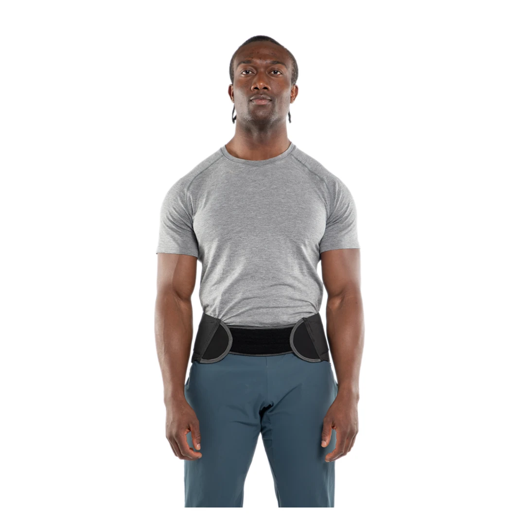 The Men’s Pelvic Support Belt features a two-piece design. The non-elastic Front Support wraps around the low abdomen, resting just above the greater trochanters (the top of the thigh bone and widest part of the hip). The Pelvis Support is made of high-compression elastic that wraps around the pelvis and attaches to the Front Support, offering a firm “hug.” The patented elastic side straps add a second layer of compression to the front or back of the pelvis, exactly where it’s needed. - Designed for comfort and movement