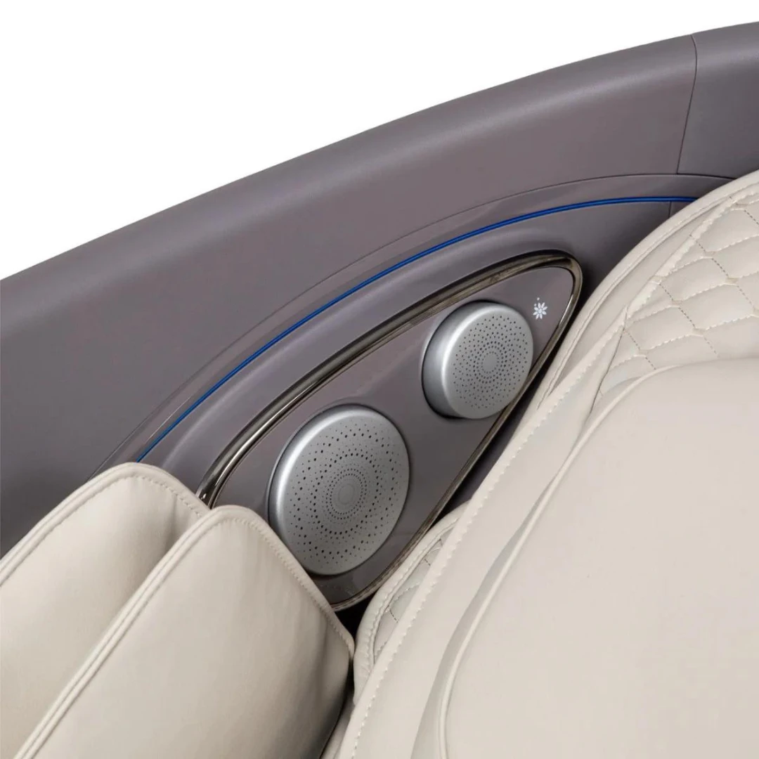 The Flagship includes a series of Aroma cartidges that can be turned on using the controller. Located next to the speakers, the refillable Aroma capsule releases a scent that may help the user ease and relax into the massage experience.