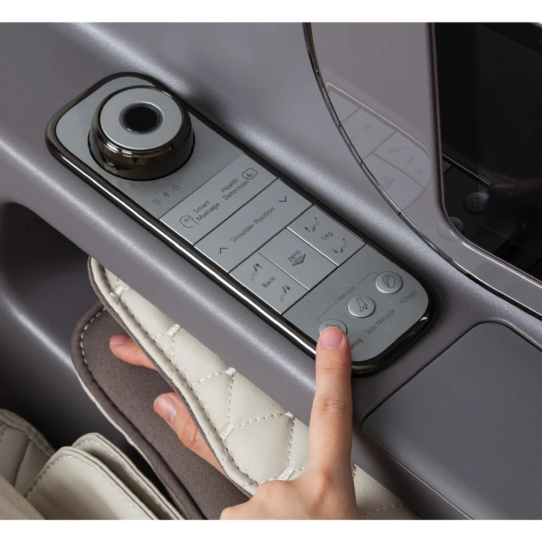 The Flagship provides a shortcut panel in the side of the armrest, allowing users to conveniently make any quick adjustments to their massage experience.