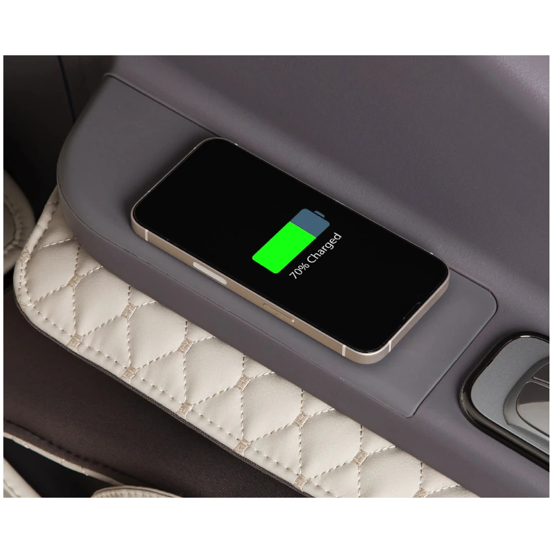 The Flagship’s wireless charging surface can provide effortless charging for compatible devices during relaxation sessions.