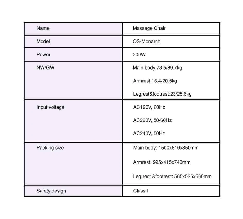 The OS-Monarch has 5 different auto massage programs plus 4 more special massage programs. There is Recovery, Pain relief, Stretch, Sleeping and Experience program. For special, there is Athlete mode, Shopaholic, Neck & Shoulder and Back & Waist.
