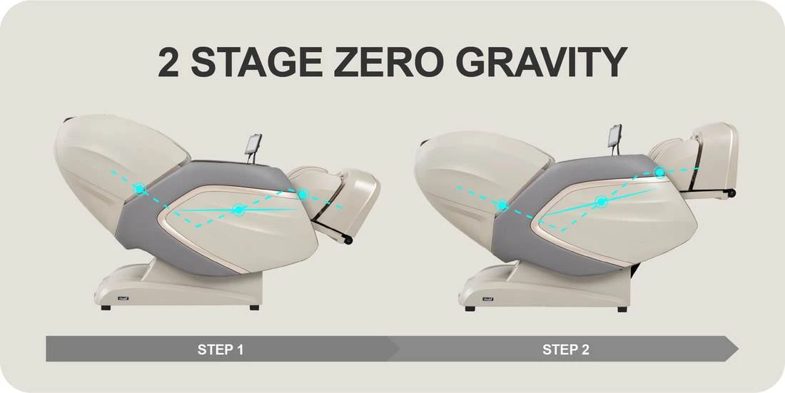 Emperor is equipped with 2 stages of zero gravity, giving the user a weightless feeling during the massage. This gives the user an option on how far back they want their chair to recline automatically, or you can adjust the chair manually with the remote. Inspired by NASA the Zero Gravity is to help reduce the stress on the back, evenly distributing the weight and pressure.