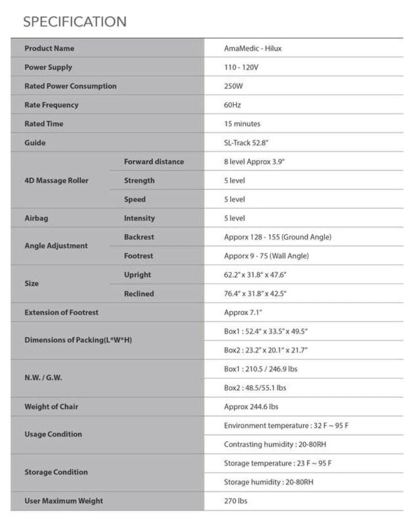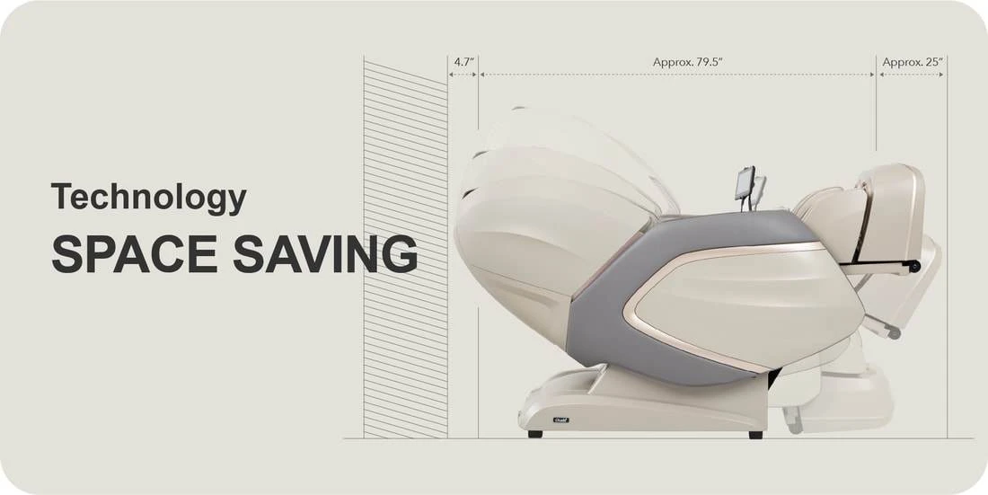 The Emperor 4D only needs 4.7” from the backrest to the wall, which reduces the amount of space the chair takes up. Space saving design allows you to maximize your valuable living space.