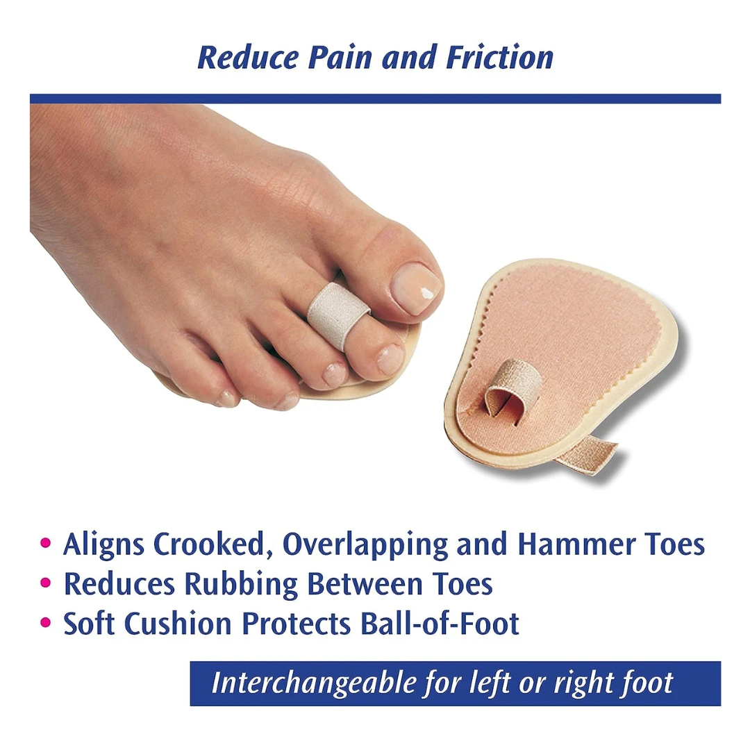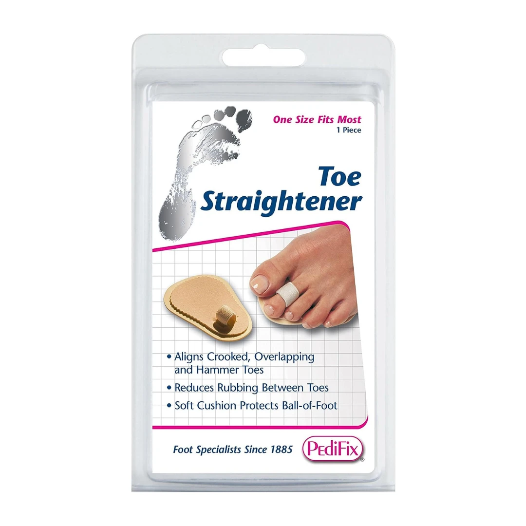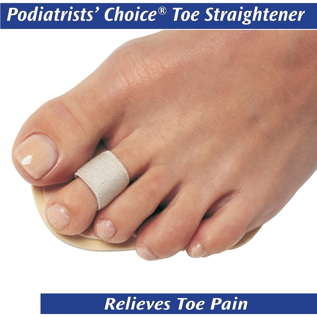 lleviate discomfort and minimize friction caused by crooked, overlapping, and flexible hammer toes using the PediFix Podiatrists’ Choice Toe Straightener. This innovative solution features an adjustable loop that gently guides toes into proper alignment. Complementing this alignment aid, a soft, dual-layer cushion provides soothing relief to the ball-of-foot region. The convenience of interchangeability for both left and right feet enhances its practicality. Say goodbye to discomfort and welcome enhanced toe comfort with the PediFix Podiatrists’ Choice Toe Straightener.