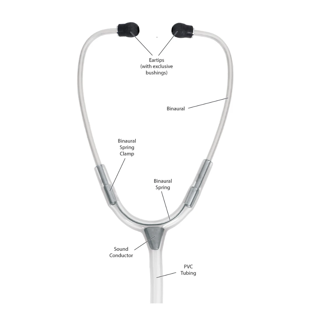 Made from anodized aluminum, the Clinical Lite is a classic dual head stethoscope which is extremely light weight and affordable. A fiberglass diaphragm is utilized to optimally detect S1 and S2 heart sounds as well as Korotkoff sounds, while the bell side is optimally designed for assessing S3 and S4 heart sounds. The Clinical Lite incorporates a Snap-On diaphragm retaining ring and a non-chill bell ring which contributes to the ease of use and maintenance, while enhancing patient
