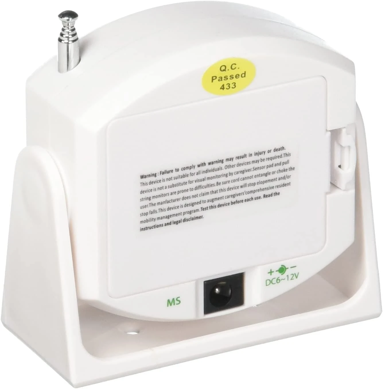 Caregiver will receive notification at the Economy CordLess Monitor when movement is detected by the Motion Sensor. This system has a range of up to 300 feet (depending on environment) and is perfect for use beside the bed or over a doorway.