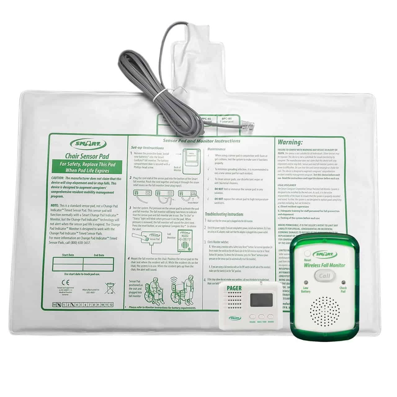 The Wireless Fall Monitor with Chair Sensor Pad and Pager Kit from Smart Caregiver gives nurses and caregivers the freedom to move around and perform other tasks with the confidence that they’ll be alerted if a patient/resident in their care gets out of bed, moves around or needs assistance. The Chair Sensor Pad is placed under the resident on the chair. When resident gets up and pressure is released from the pad the Fall Monitor will be activated and alert the caregiver with a wireless signal sent to the Pager. The kit contains one (1) Wireless Fall Monitor ; one (1) Silver Lining 10 in. x 15 in. Chair Sensor Pad with 1 Year Warranty; and one (1) Caregiver LCD Pager.