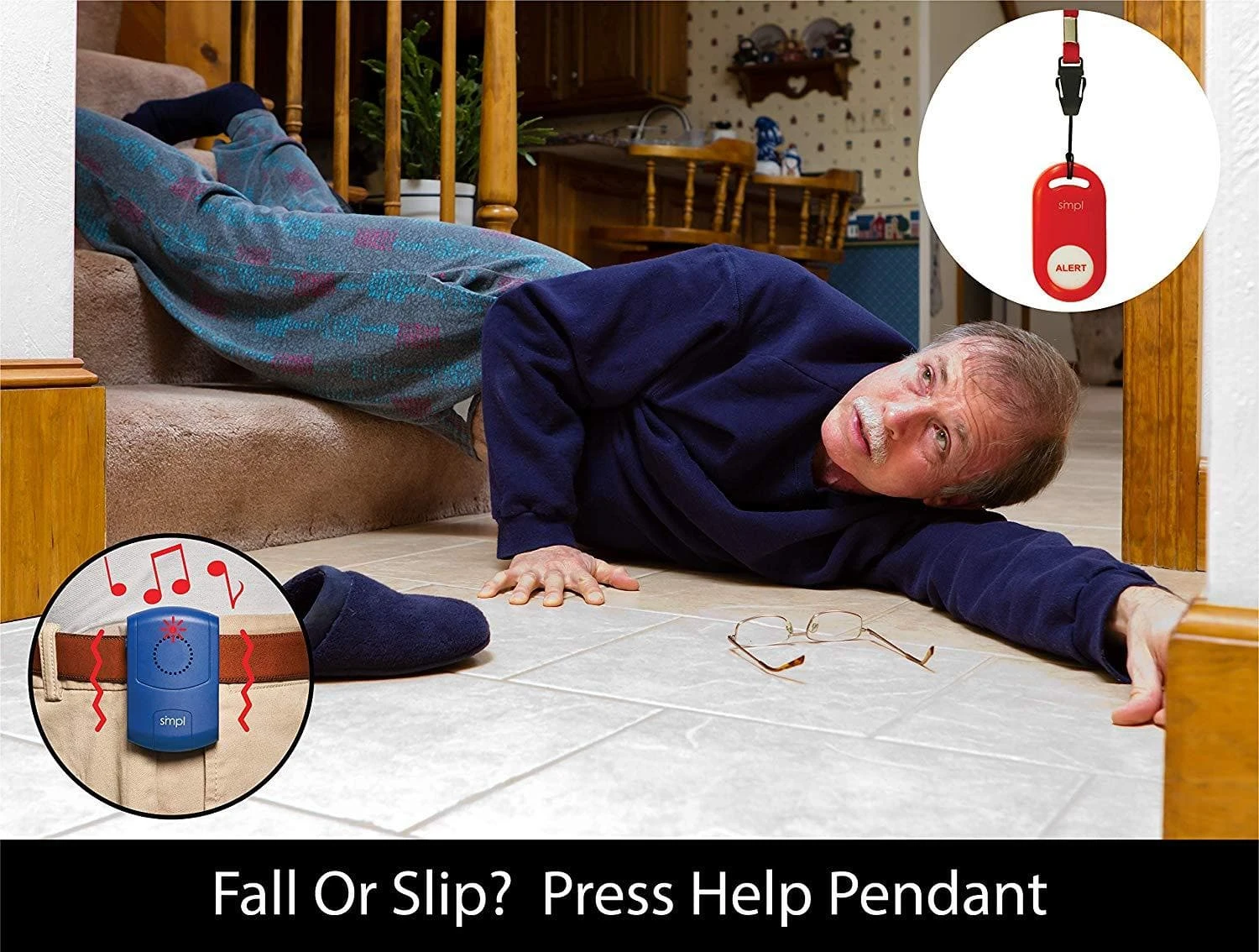 - When pressed, the smpl SOS/Help Pendant Alerts the smpl Pager within 250 ft.