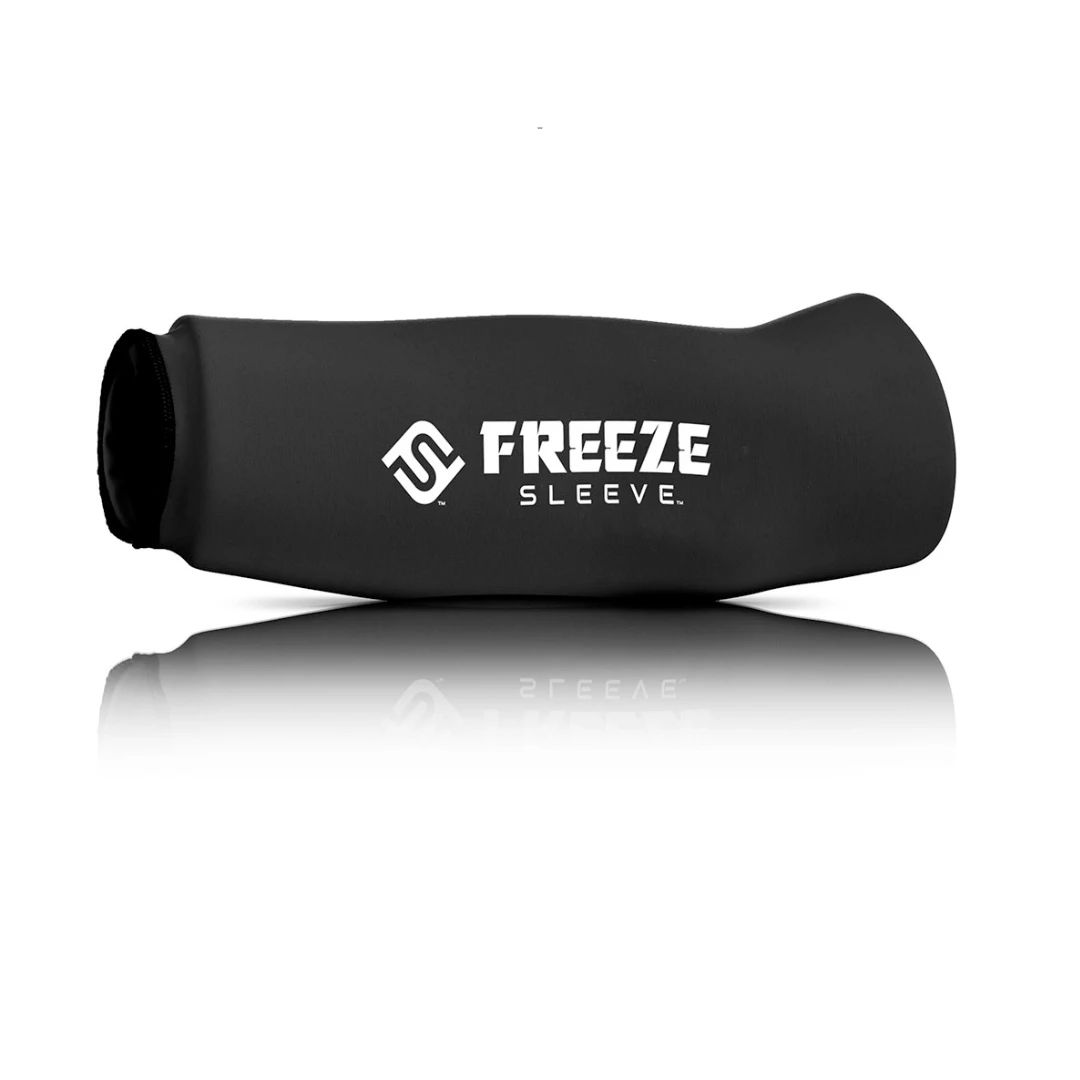 The Freeze Sleeve is a revolutionary cold/heat compression sleeve that provides pain relief and speeds recovery for aching muscles and joints, while allowing for comfort and a full range of motion. The Freeze Sleeve makes ice/heat packs and wraps a thing of the past. This therapeutic cold/heat sleeve helps speed relief and recovery by efficiently treating sore muscles and joints. It features a sleek black design, and its specially formulated gel is super soft and flexible.