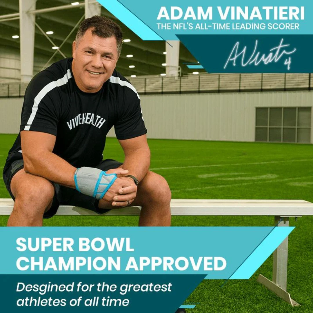 The Vive wrist ice wrap uses a single Arctic Flex gel pack, uniquely designed to wrap around the entire wrist for optimal relief.