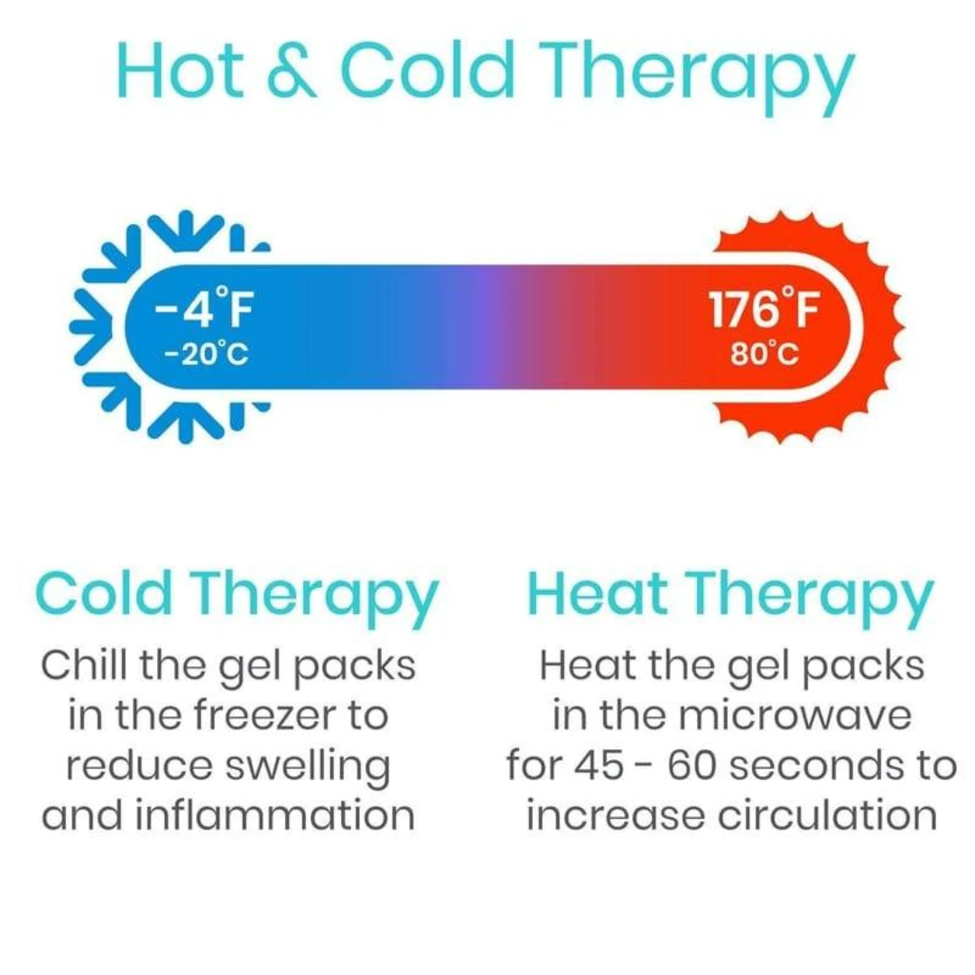 The 3 freezable and microwaveable gel packs can be placed right where you need it for customized treatment
