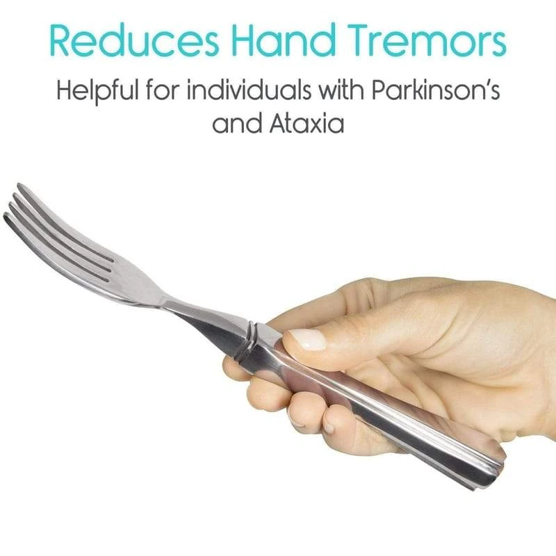 - 4X HEAVIER THAN TRADITIONAL SILVERWARE – Polished stainless steel helps to reduce hand tremors from Parkinson’s and other muscle conditions