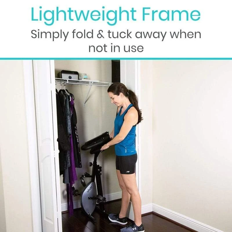 Compact for easy storage when not in use, the upright Vive X-bike is a space-saving, foldable design that is great for those with limited floor space. The upright stationary bike includes lower handlebars to promote proper spinal alignment while exercising.