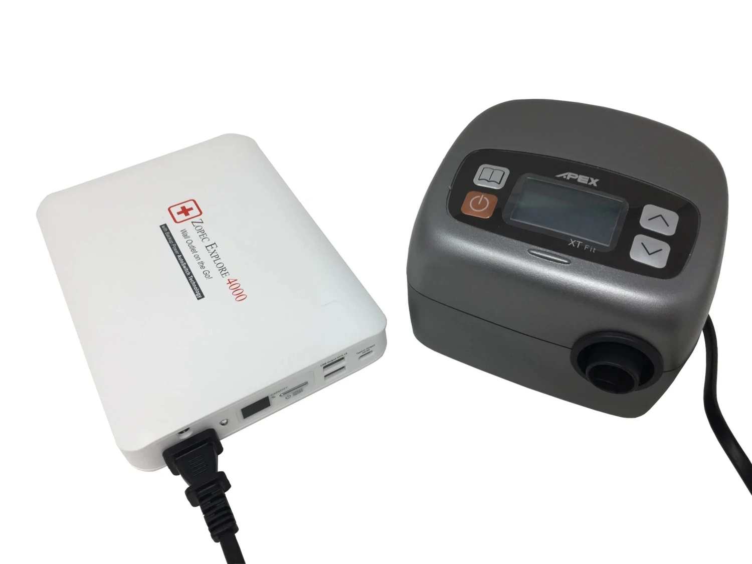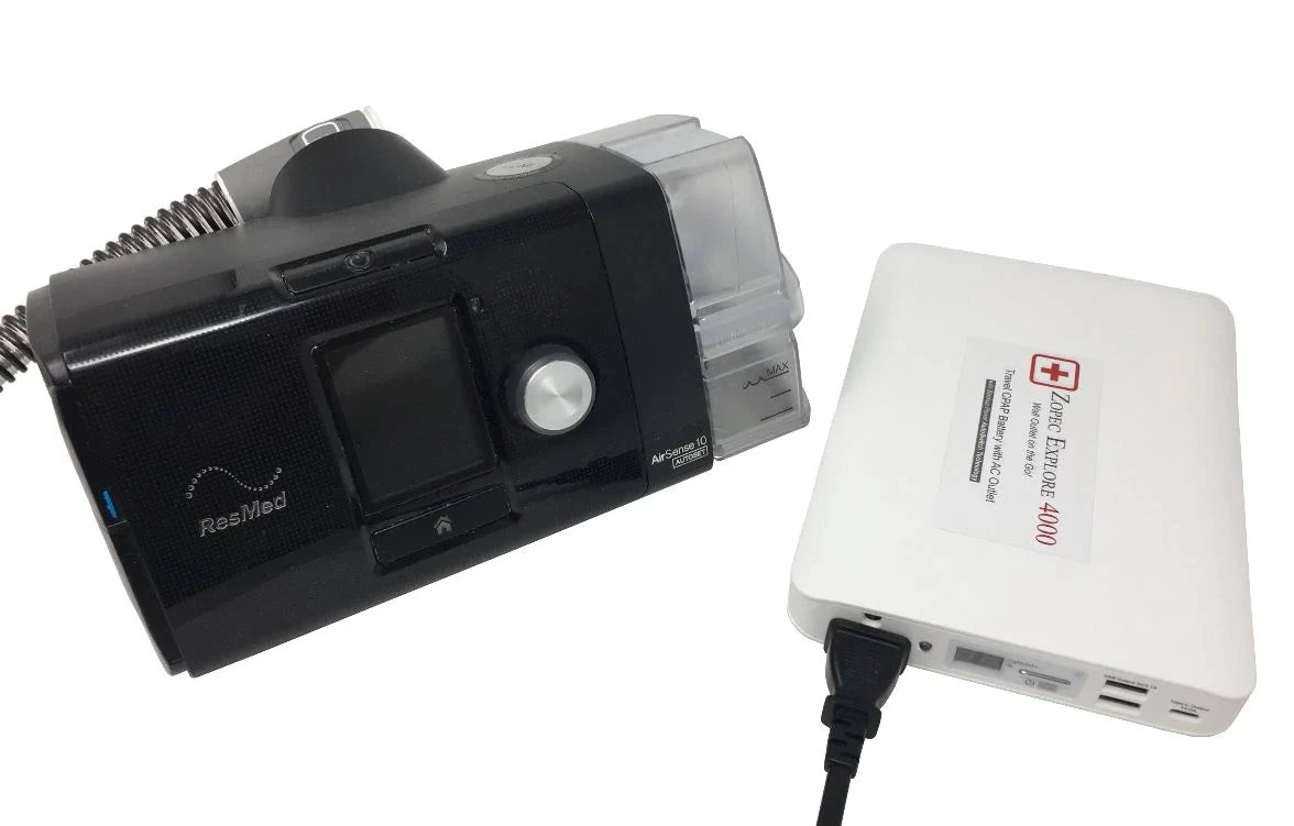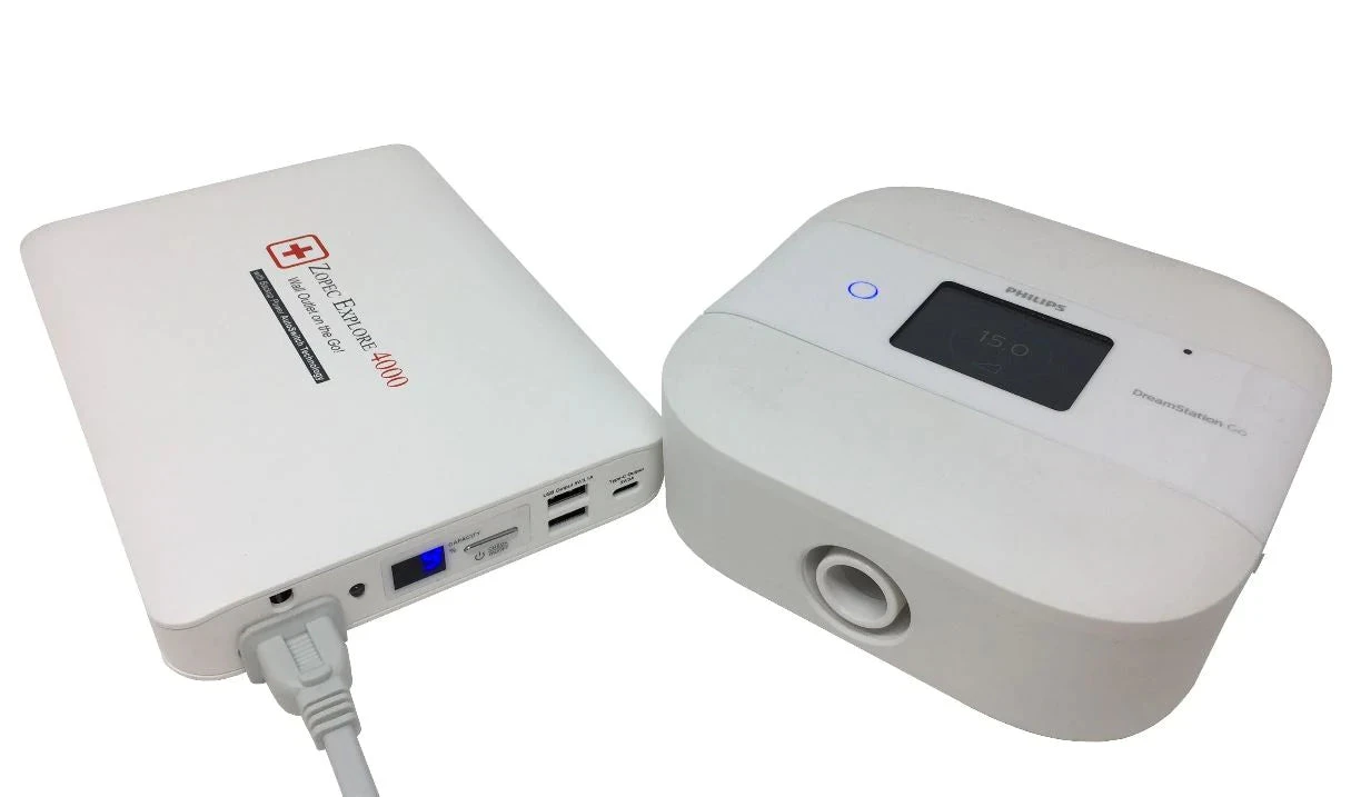 The Zopec Medical Explore 4000 Universal Portable CPAP Battery & Power Bank is designed to sleep with CPAP for 12 – 16 hours WITHOUT Heated Humidifier and Heated tube (depending on setting, see image for run time table). Uninterrupted sleep through Power Outages. Fast Car Charger Included! For extended power outages, powerful Solar Charger (40W, 60W, 100W) available for separate purchase. Very versatile for power outages, can run lift chair and internet modem, laptops, phone to stay connected. FAA/TSA Compliant for Air Travel!